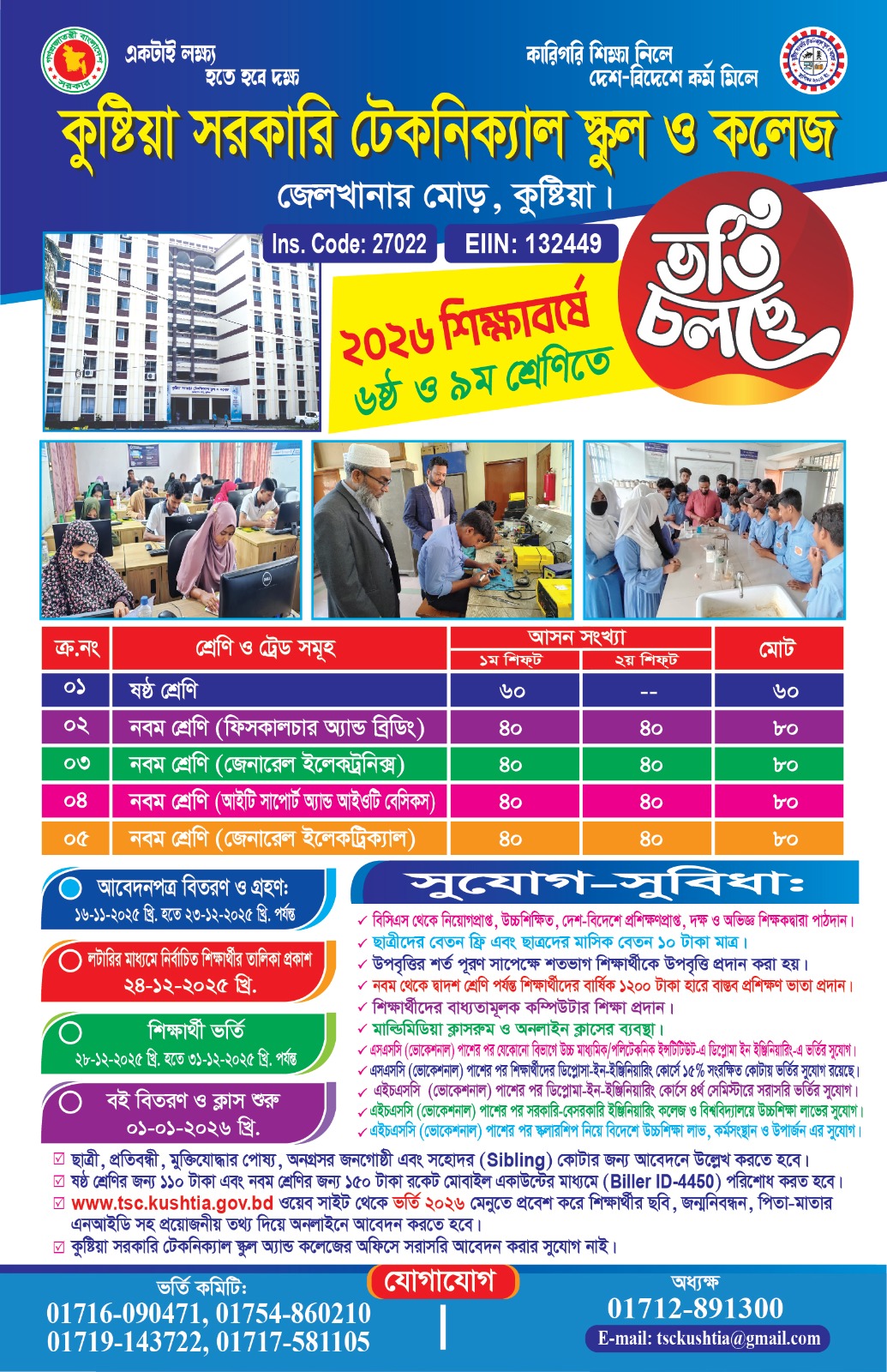 শিক্ষার্থী ভর্তির বিজ্ঞপ্তি ও নিয়মাবলী